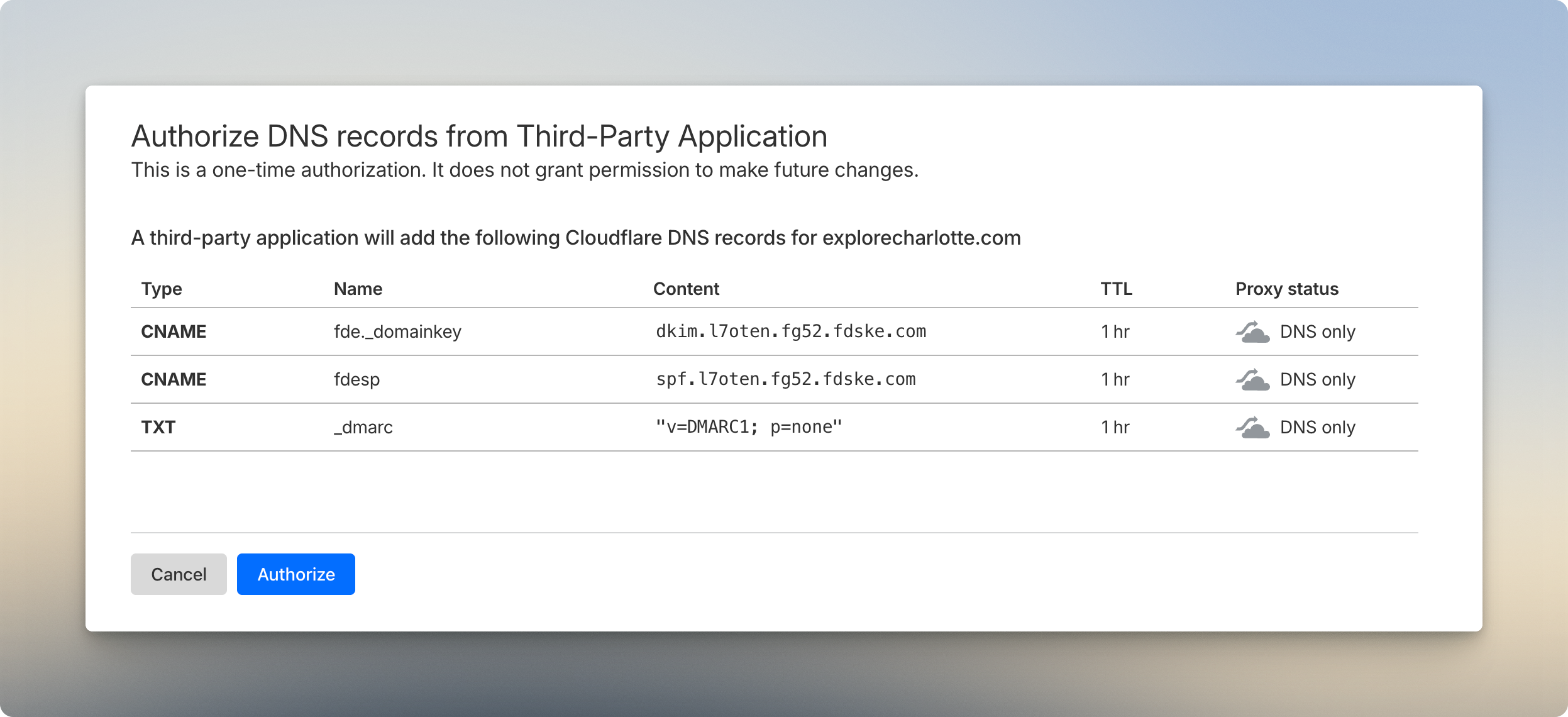 Flodesk also gives an option to auto-authenticate your domain. When you choose this, Flodesk prepares all the needed DNS records for you. Just click yes to add them. You don’t need to sign up for any third-party pop-up service — select guest access, and it will detect your hosting provider. Then log in to your Cloudflare account and add the records. That’s all you have to do.